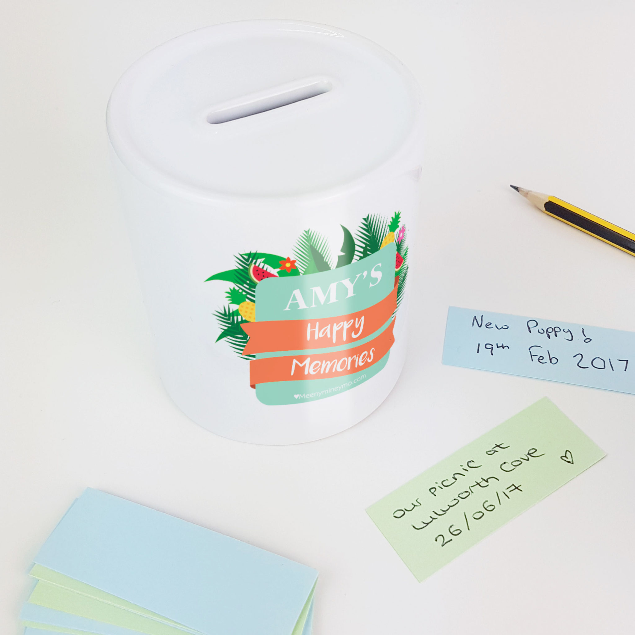 A lovely sentimental gift, a money box with a twist. Write down and post in your favourite memories and keep them forever!